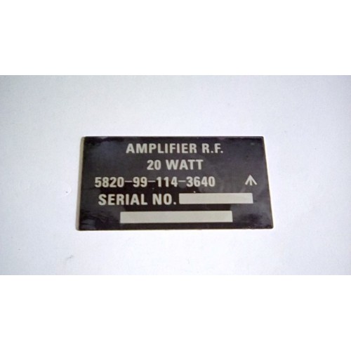 6228192 CLANSMAN,UK/PRC352, 20W AMPLIFIER IDENTIFICATION PLATE DECAL. 9905996228192 9905 99 622 8192 39003-115-10 SDA239403