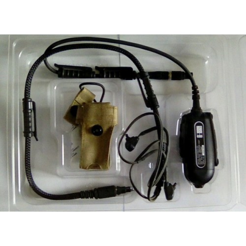 BOWMAN PTT/ MIC / IN EAR HEAD SET ASSEMBLY FOR USE WITH PRC 343 ETC. Racal Acoustics Frontier 1000 RA5500 / 1020 Headset for Selex Bowman PRR PRC 343 COMPLETE SET WITH POUCH, LESS CUSTOM EARPLUGS SOLD SEPARATELY.
