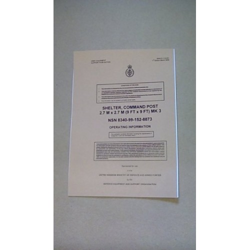 8340C112201 OPERATING MANUAL FOR, SHELTER,COMMAND POST, 2.7M X 2.7M (9 FT X 9 FT) MK 3.