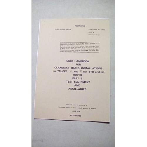 CLANSMAN HANDBOOK TEST EQUIPMENT AND ANCILLARIES IN 1/2 & 3/4 TON LAND ROVER