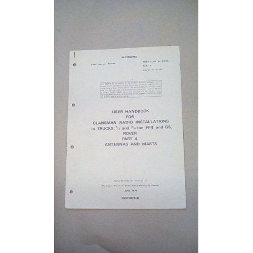 USER HANDBOOK FOR CLANSMAN RADIO INSTALLATIONS IN TRUSK UTILITY,1/2 AND 3/4 TON, TUL AND TUM FFR AND GS, ROVER.
