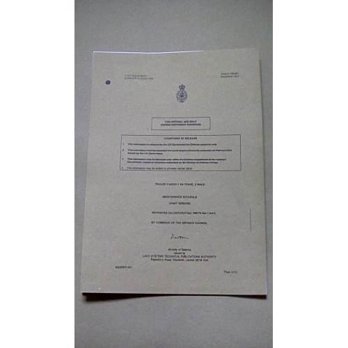 TRAILER CARGO BODY GENERAL PURPOSE 1.3/4 TON 2 WHEELED FV2409 MAINTENANCE SCHEDULE JS