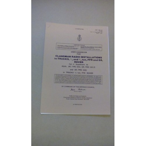 USER HANDBOOK FOR CLANSMAN RADIO INSTALLATIONS IN TRUCK UTILITY,1/2 AND 3/4 TON, TUL AND TUM FFR AND GS, ROVER.