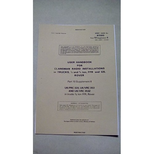 61590106 USER HANDBOOK FOR CLANSMAN RADIO INSTALLATION IN TRUCKS,1/2 AND 3/4 TON, FFR AND GS, ROVER.