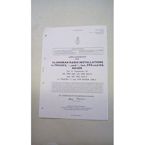 USER HANDBOKK FOR CLANSMAN RADIO INSTALLATIONS IN TRUCKS, 1/2 AND 3/4 TON, FFR AND GS ROVER.