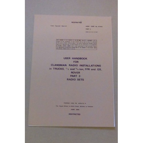 USER HANDBOOK FOR CLANSMAN RADIO INSTALLATIONS IN TRUCK UTILITY,1/2 AND 3/4 TON, TUL AND TUM FFR AND GS, ROVER.