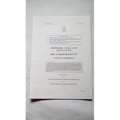 SUNSHADE, 7.2M X 5,4M (24FT X 18FT) NSN J11/8340-99-575-0779