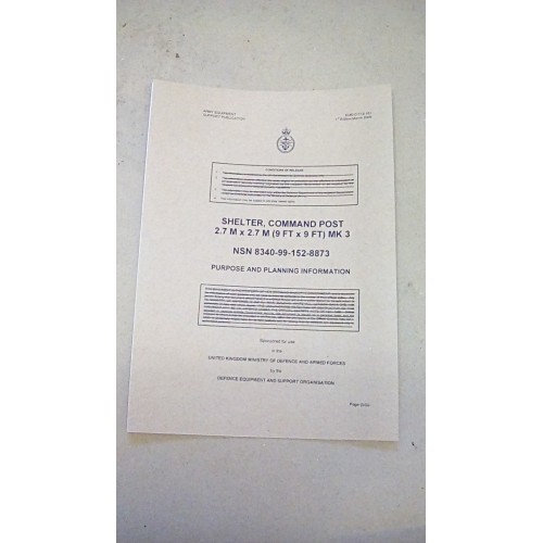 SHELTER COMMAND POST 9FT X 9FT MK 3 LITERATURE