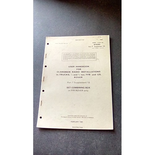 CLANSMAN USER HAND BOOK SET COMBINING BOX INSTALLATION IN LAND ROVER 3/4 AND 1/2 TON FFR