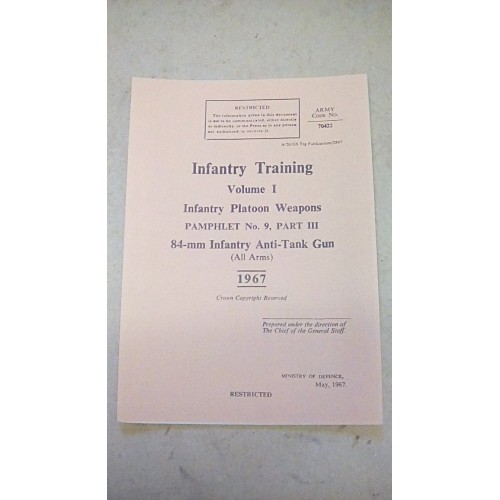 INFANTRY TRAINING VOLUME 1, INFANTRY PLATOON WEAPONS, PAMPHLET NO 9 PART 3, 84 MM INFANTRY ANTI TANK GUN (ALL ARMS) 1967
