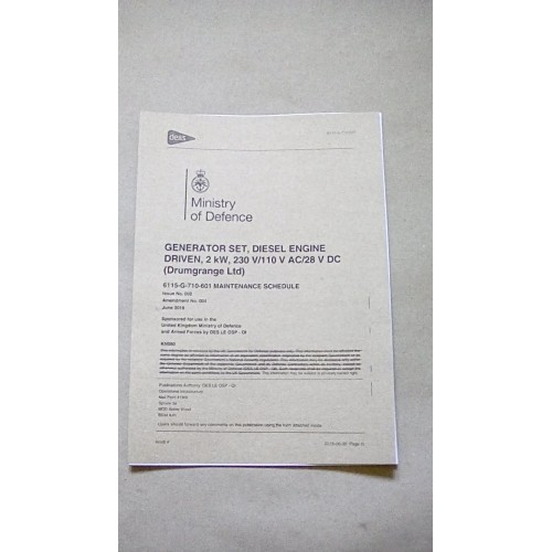 GENERATOR SET DIESEL 2KW 230V 110V AC 28VDC DRUMGRANGE MAINTENANCE SCHEDULE