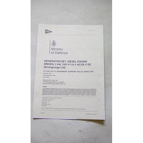 GENERATOR SET DIESEL 2KW 230V 110V AC 28VDC DRUMGRANGE EQUIPMENT SUPPORT POLICY DIRECTIVE