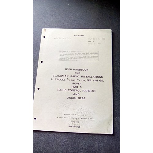 615905 USER HANDBOOK CLANSMAN RADIO CONTROL HARNESS AND AUDIO GEAR USER HANDBOOK FOR CLANSMAN RADIO INSTALLATIONS IN TRUCK UTILITY,1/2 AND 3/4 TON, TUL AND TUM FFR AND GS, ROVER. 61590 PART 5 RADIO CONTROL HARNESS AND AUDIO GEAR