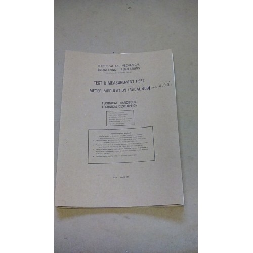 METER MODULATION RACAL 409 AND 409-2 TECHNICAL HANDBOOK AND DESCRIPTION