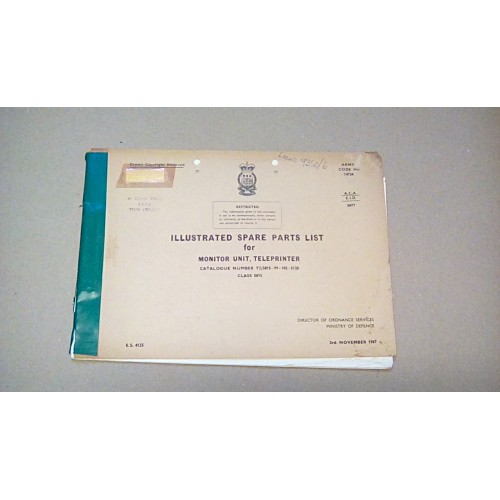 MONITOR UNIT TELEPRINTER ILLUSTRATED SPARE PARTS LIST