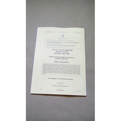 TRUCK UTILITY MEDIUM (HEAVY DUTY) 6X6 PPV VECTOR COMPLETE EQUIPMENT SCHEDULE, SERVICE EDITION SIMPLE EQUIPMENT