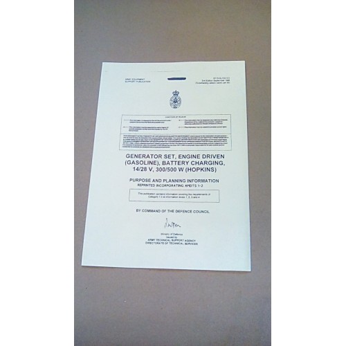 GENERATOR SET ENGINE DRIVEN BATTERY CHARGING 14 TO 28V 300 TO 500 W HOPKINS
