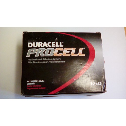BATTERY D CELL ALKALINE 1.5V NON RECHARGEABLE DURACELL PROCELL X12 PER CARTON. EXP 2020