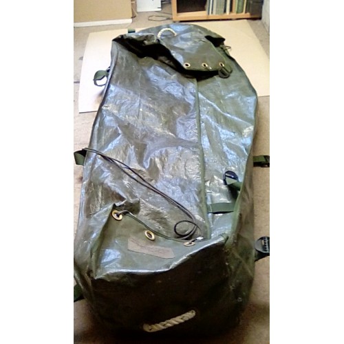 VALISE NYLON, GOOD USED CONDITION, SOME SIGNS OF USE OR SMALL HOLES,WEAR MARKS, OTHERWISE COMPLETE WITH ROPES, STRAPS,BUCKLES ETC.