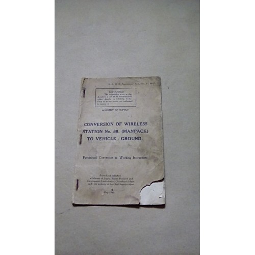 SRDE CONVERSION OF WIRELESS STATION NO.88 MANPACK TO VEHICLE AND GROUND SET, PAMPHLET NO.699A