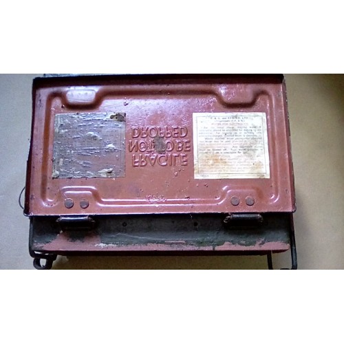 METAL RADIO BATTERY CONTAINER FOR 6 VOLT 0.85AH BATTERY DATED WITH ARROW, GOOD IUSED REQUIRES SOEM ATTENTION TO BASE. SEE PHOTOS.